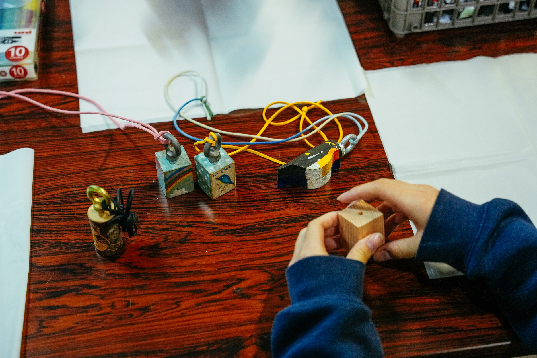 木を削り、絵を描き、〈こども ビームス〉が特別に選んだカラフルなストラップを組み合わせれば、自分だけの「森の楽器」が完成! 完成したバードコールを手に、ガイドと一緒に深い森へ出発しましょう。